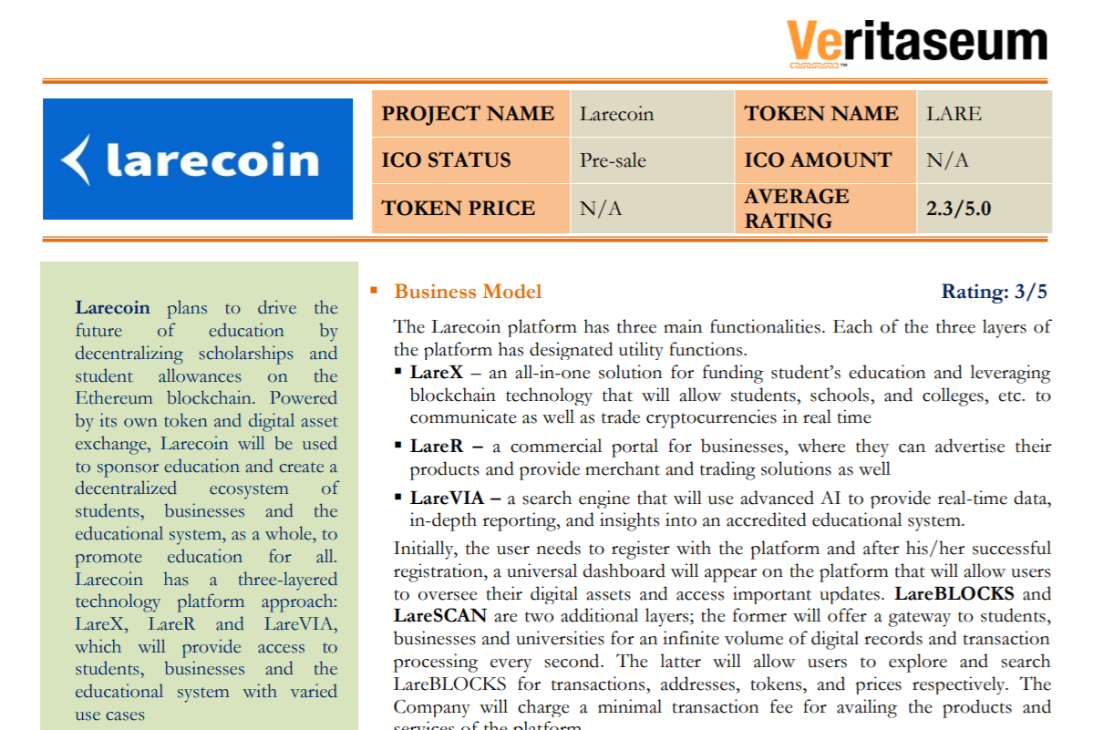 Larecoin  Summary Evaluation