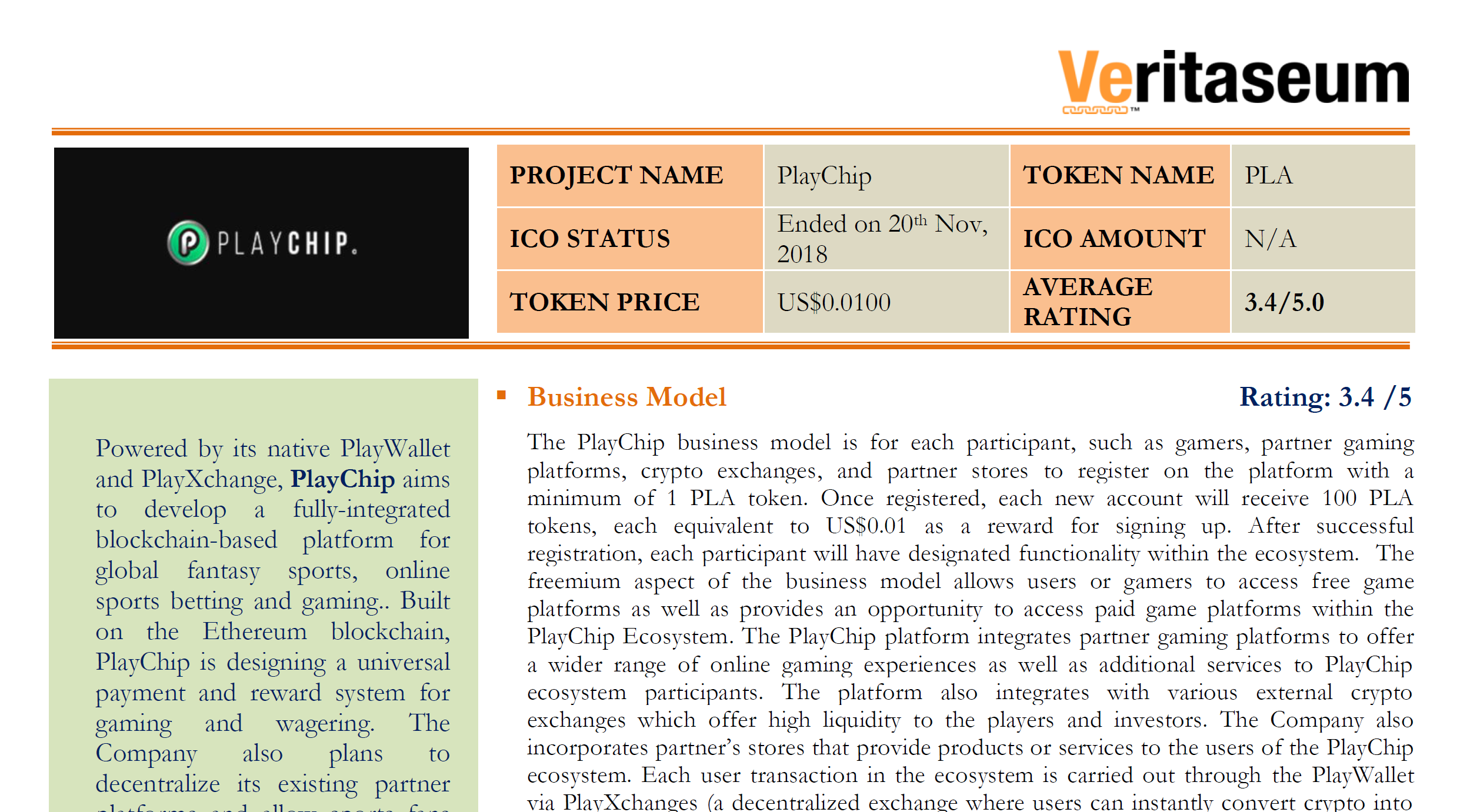 Powered by its native PlayWallet and PlayXchange, PlayChip aims to develop a fully-integrated blockchain-based platform for global fantasy sports, online sports betting and gamingBuilt on the Ethereum blockchain, PlayChip is designing a universal payment and reward system for gaming and wagering. The Company also plans to decentralize its existing partner platforms and allow sports fans to connect, compete and collect rewards, irrespective of their location.