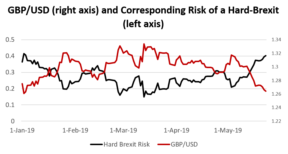 May’s resignation, and possible replacement by Boris Johnson, does show that the risk of a no-deal Brexit is rising with betting markets having raised their up from roughly 10-15% to 20-25% in recent weeks. We reiterate that the economic damage of a no-deal Brexit would be substantial.