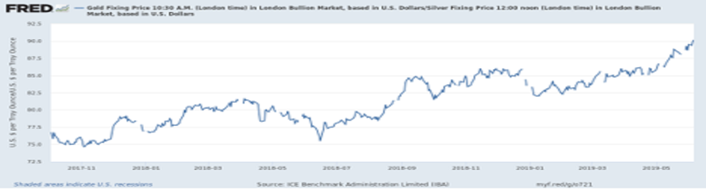 We have been fairly optimistic about gold prices over the next year or so. Nevertheless, the latest rise in gold prices from $1280/ounce on May 29 to $1342 as of June 7 (4.8%) seems to be based on unsound factors and there is a good chance that these gains prove fleeting in the near-term. Specifically, markets are dramatically overreacting to hints that the FOMC may soon start cutting interest rates.